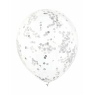6 Прозорих латексних кульок зі сріблястим конфетті 30 см