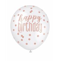 6 латексних кульок з біло-рожевим горошком "З Днем народження" 30 см
