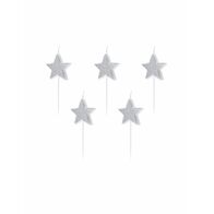 5 святкових свічок на шипах з блискучими сріблястими зірками 3,5 см