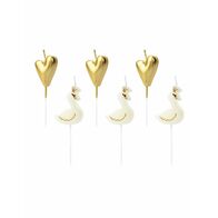 6 золотих і білих свічок з лебедем і серцем 3,5 - 4 см