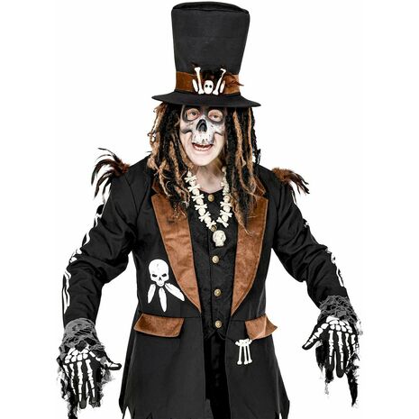 Превратитесь в скелета до кончиков пальцев! Эти черные перчатки-скелеты из ткани предназначены для взрослых. На верхней части рук напечатаны белые кости. Эти перчатки-скелеты идеально подойдут для завершения вашего образа скелета на Хэллоуин или костюмированную вечеринку. В комплект входят аксессуары: 2 перчатки