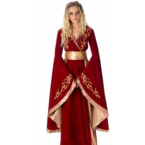 Будь королевою вечірки! Цей середньовічний костюм для жінок складається з довгої сукні (взуття не входить до комплекту). Ця довга червона сукня сягає до щиколоток. Вона має довгі рукави-кльош, натхненні Середньовіччям. V-подібний виріз горловини та облягаюча талія прикрашені вишуканою золотою обробкою. Цей середньовічний костюм ідеально підходить для карнавалу чи середньовічної вечірки! Аксесуари в комплекті: Матеріал сукні: 100% поліестер Догляд: Ручне прання
