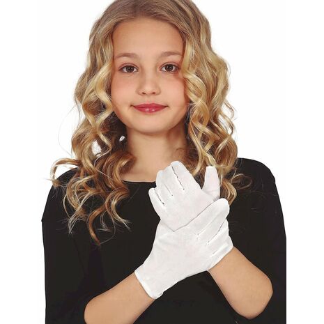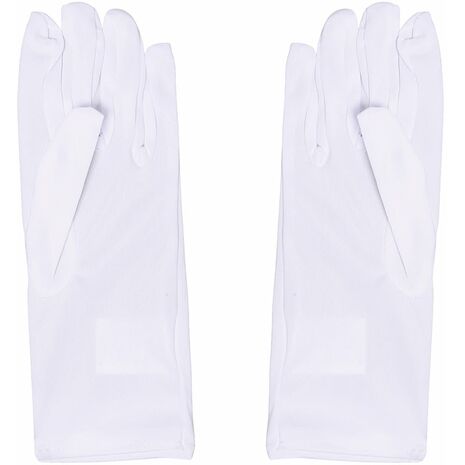 Біліше за біле! Ця пара коротких білих рукавичок, що продаються окремо, призначена для дітей. Вони підходять для дітей віком від 5 до 7 років. Ці рукавички ідеально підійдуть як аксесуари до різних костюмів для костюмованих вечірок або карнавалів! Аксесуари в комплекті: пара рукавичок. Матеріал: поліестер. Догляд: ручне прання.