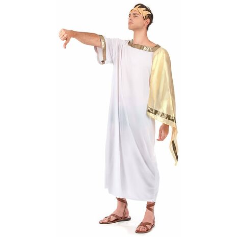 Блискуча золота накидка! Цей чоловічий костюм римського імператора складається з довгої білої тоги із золотою півнакидкою та головного убору з еластичного золотого лаврового листя. Цей дуже зручний костюм дозволить вам знову пережити стародавній період під час тематичних вечірок, карнавалу чи будь-якого іншого костюмованого заходу. Аксесуари в комплекті: Тога. Матеріал головного убору: 100% поліестер. Догляд: Ручне прання.