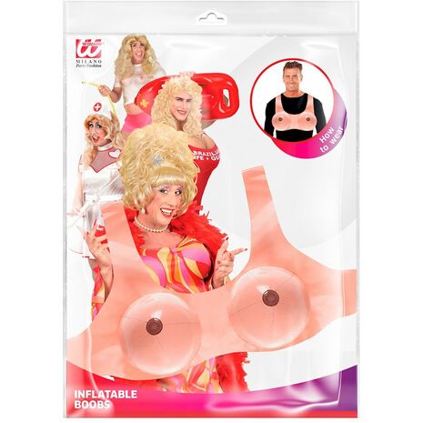 Покажіть пишні груди! Цей бюстгальтер для дорослих уособлює собою штучні груди. Кожні груди надуваються завдяки клапану, розташованому ззаду. Бюстгальтер зав'язується на спині. Цей бюстгальтер ідеально підійде для того, щоб підкреслити свою жіночність під час дрег-вечірки або відсвяткувати кінець вашого самотнього життя. Авторське право належить Widmann SRL. Аксесуари в комплекті: Бюстгальтер
