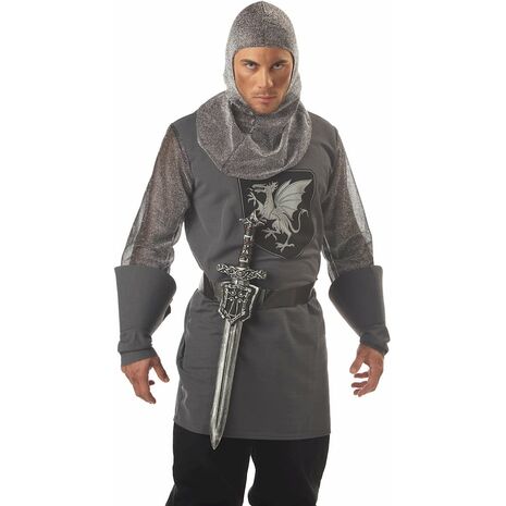 Грайте за лицаря! Цей лицарський набір складається зі срібного пластикового лицарського меча та чорного пояса. Руків'я закінчується шипами, а центр гарди зображує череп. Біля основи клинка знаходиться герб з релігійним хрестом посередині. Клинок прямий з пазом посередині, довжина меча 61 см. Цей меч ідеально підійде для завершення лицарського костюма. Аксесуари в комплекті: Матеріал меча: Пластик
