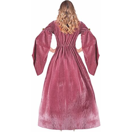 Подорож у часі! Цей середньовічний костюм принцеси для жінок включає довгу сукню та золоту корону. Сукня з ефектом оксамиту поєднує в собі верх з перехресним шнурівкою та рожево-білий низ. Її довгі відкриті рукави, підбиті атласною тканиною, надають їй елегантного вигляду. Маленькі золоті банти прикрашають плечі, а золота тасьма прикрашає ліф і рукави. Поділ сукні розкльошений, з білою атласною панеллю посередині, обробленою рожевою тканиною з ефектом оксамиту. Тонке мереживо та золота обробка додають акуратного вигляду. Легка та вишукана золота корона доповнює цей княжий костюм. Ідеально підходить для середньовічної вечірки, карнавалу чи костюмованого вечірки, цей костюм перенесе вас в епоху замків та королівських балів!. Аксесуари в комплекті: 1 сукня, 1 корона. Матеріал: 100% поліестер. Догляд: Ручне прання.