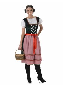 Стати найкрасивішою баварською дівчиною! Цей костюм баварської жінки складається із сукні з фартухом (панчохи, туфлі та пиво в комплект не входять). У сукні зелена атласна спідниця нижня і коричнево-білий верх з рожевою штучною шнурівкою на бюсті. На талії пришитий маленький білий атласний фартух. У сукні короткі білі пишні рукави. Під бюстом пришиті 2 зав'язки у колір сукні (коричнева та рожева), які зав'язуються на потилиці для додаткової фіксації. Ці краватки надають сукні ефекту "денгера".